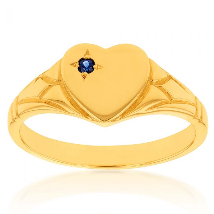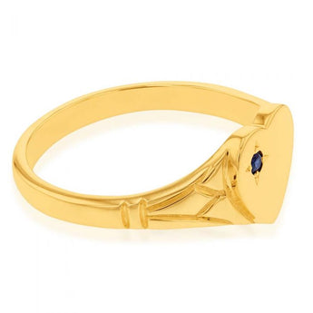 9ct Yellow Gold Sapphire Heart Signet Ring Size H