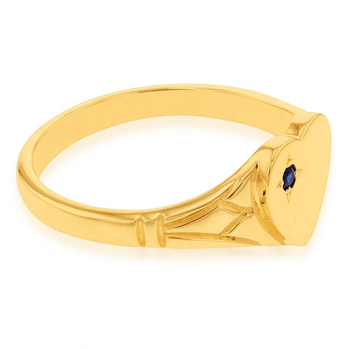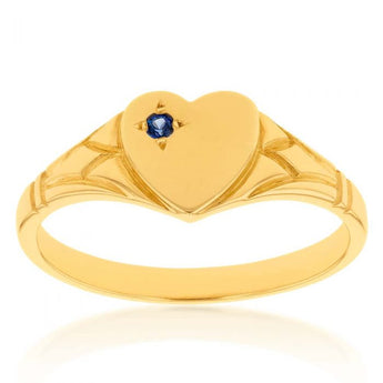 9ct Yellow Gold Sapphire Heart Signet Ring Size L