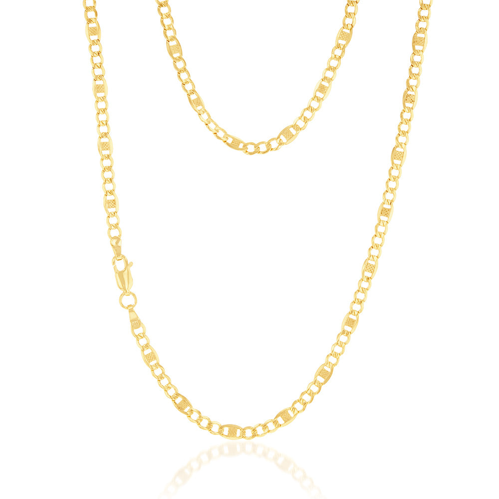 9ct Yellow Gold Silver Filled 1:3 Curb+ Anchor 80 Gauge 45cm Chain