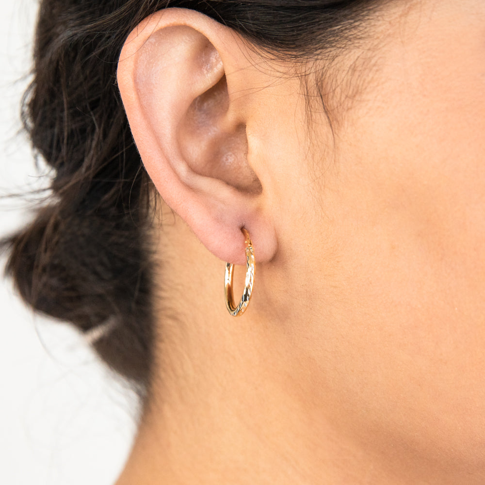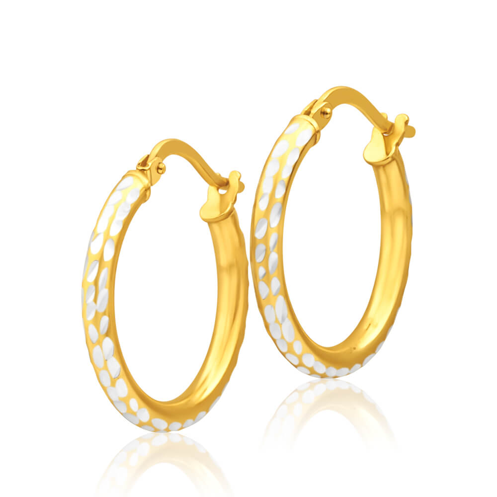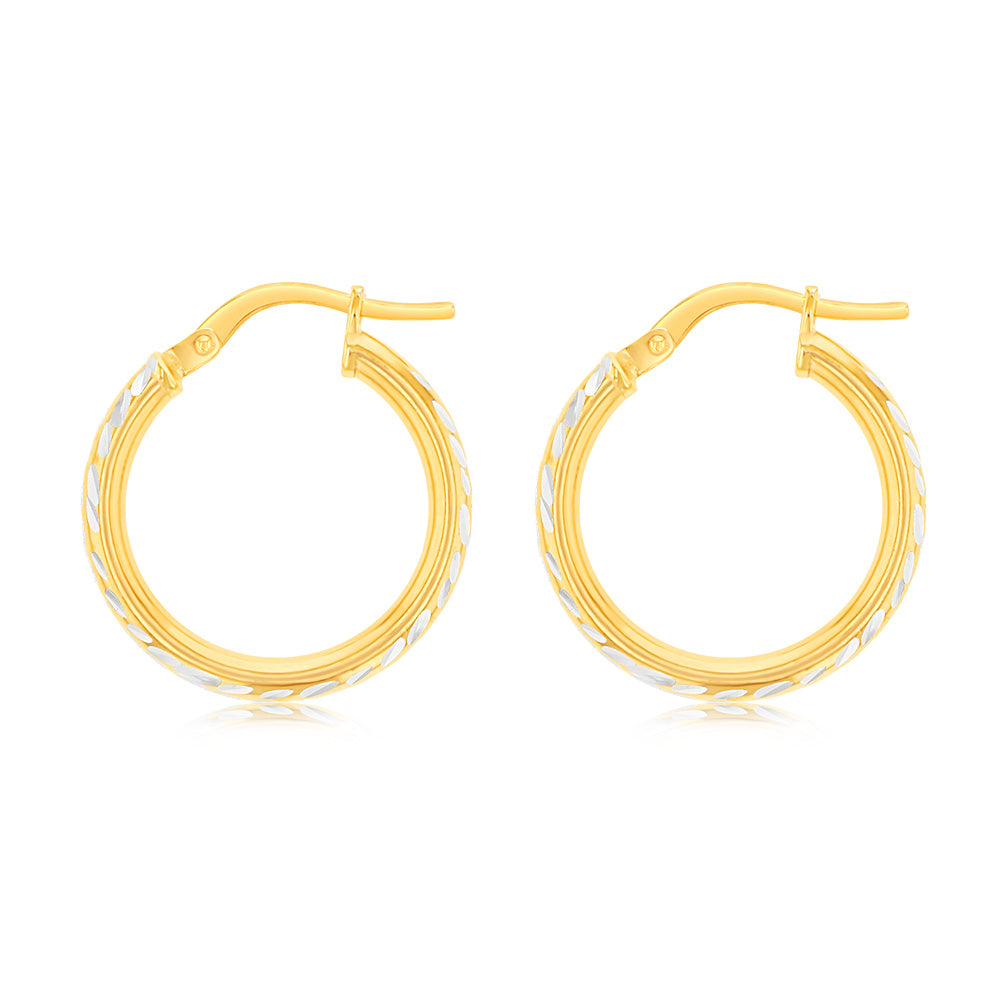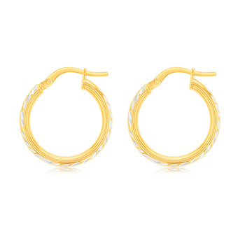9ct Yellow Gold Silver Filled 15mm Hoop Earrings with diamond cut feature