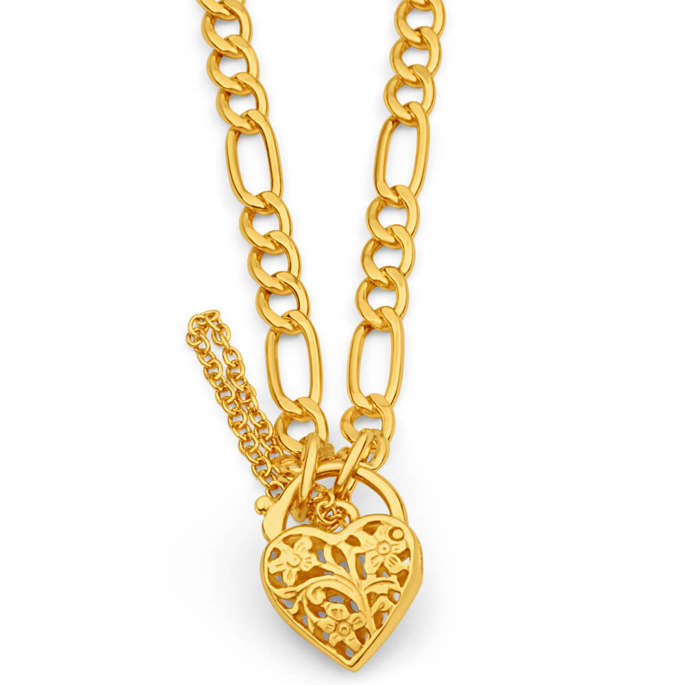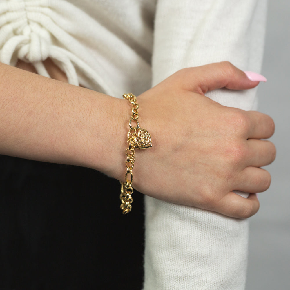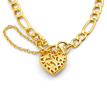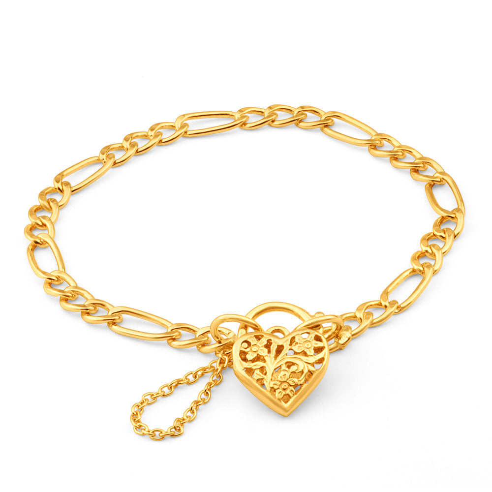9ct Yellow Gold Silver Filled 19cm Fll Heart Figaro Bracelet
