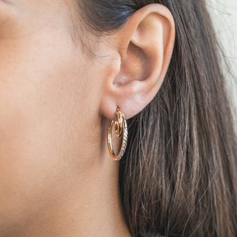 9ct Yellow Gold Silver Filled 25mm Double Hoop Earrings