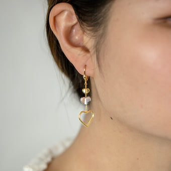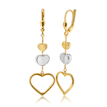 9ct Yellow Gold Silver Filled 3 Heart Drop Earraings