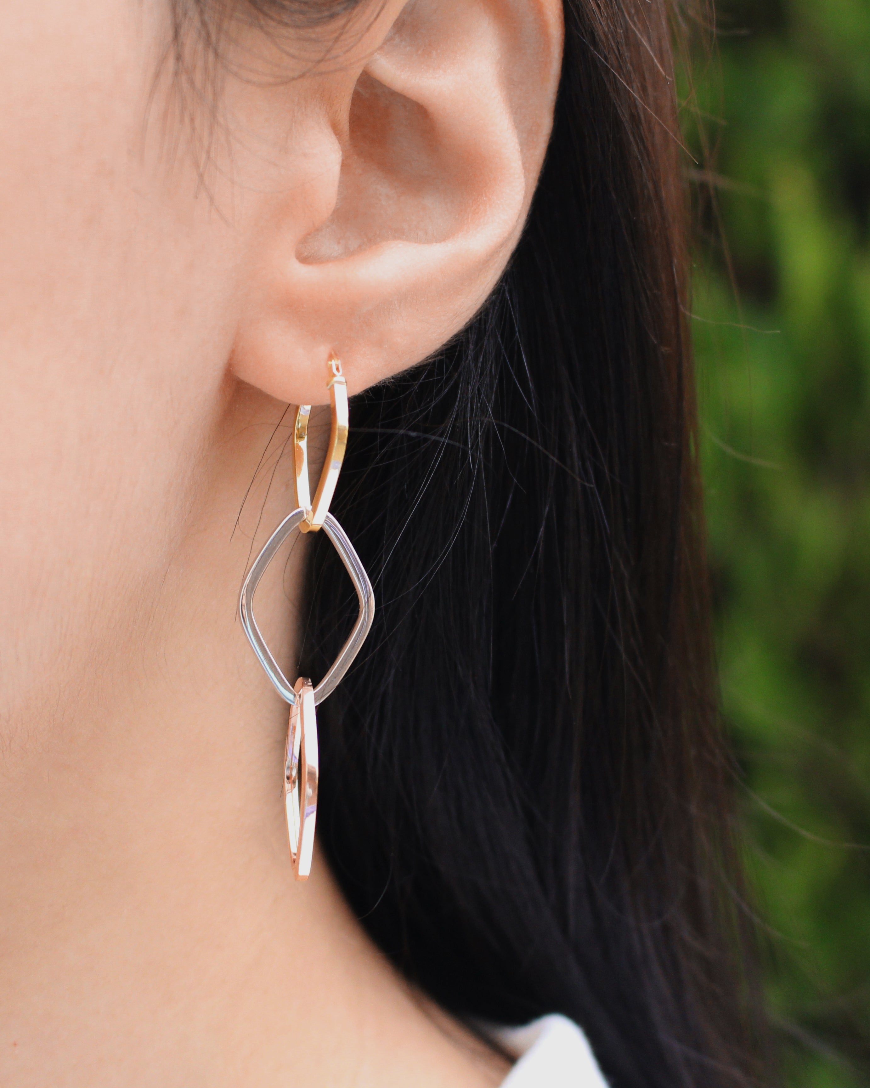 9ct Yellow Gold Silver Filled 3 Oval Ring Drop Earrings