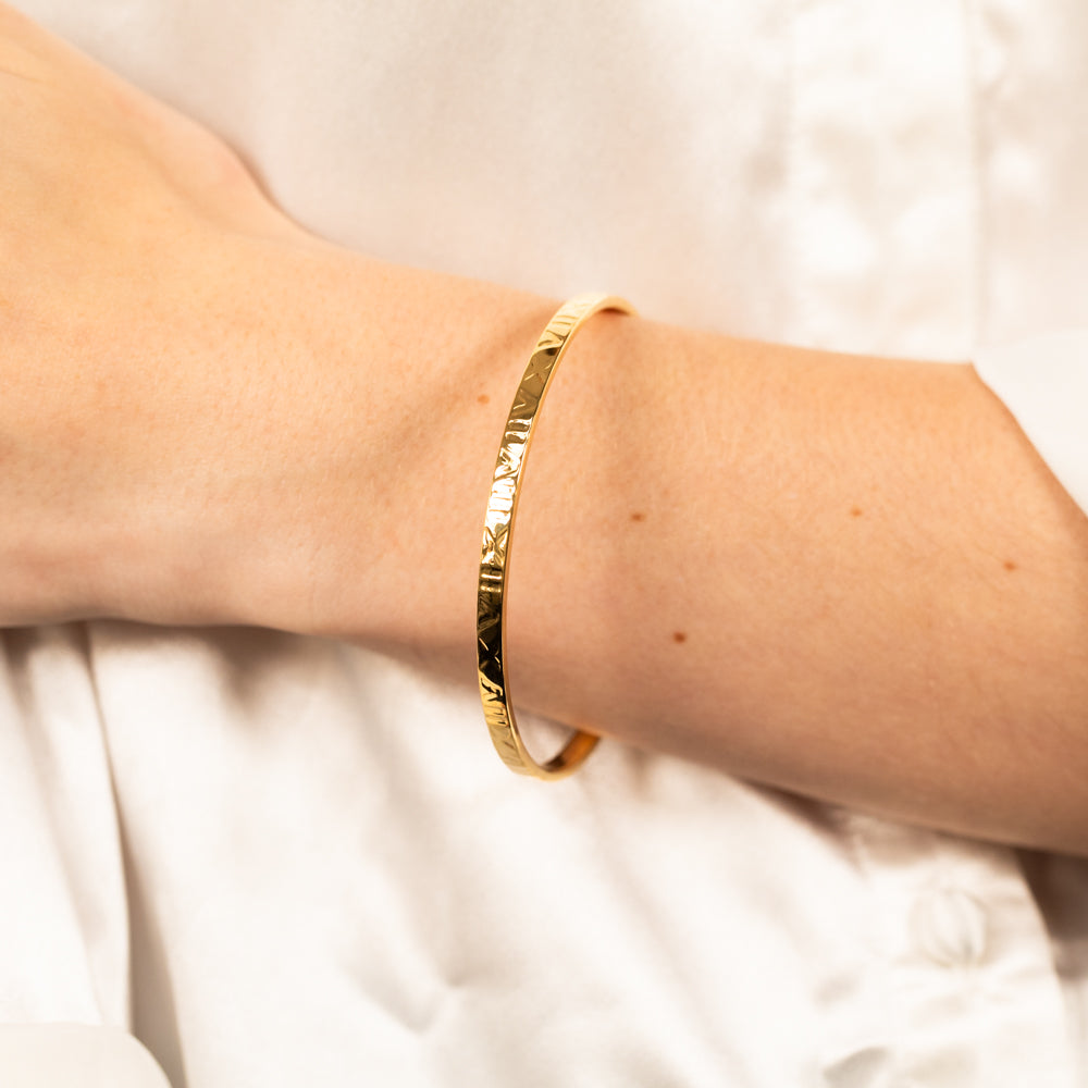 9ct Rose Gold Silver Filled 4mm Wide Roman Numeral 65mm Bangle