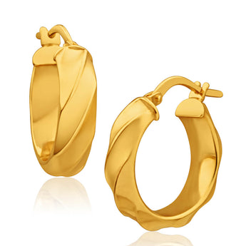 9ct Yellow Gold Silver Filled 4mm Wide Twist 13mm Hoop Earrings Erian