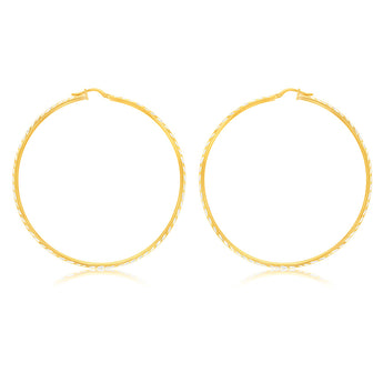 9ct Yellow Gold Silver Filled 60mm Hoop Earrings with diamond cut feature