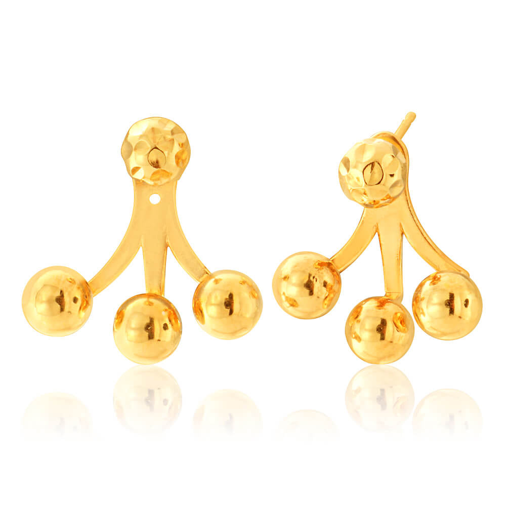 9ct Yellow Gold Silver Filled Balls Trio Ear Jacket Earrings