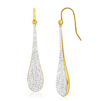 9ct Yellow Gold Silver Filled Crystal 40mm Bomber Drop Earrings