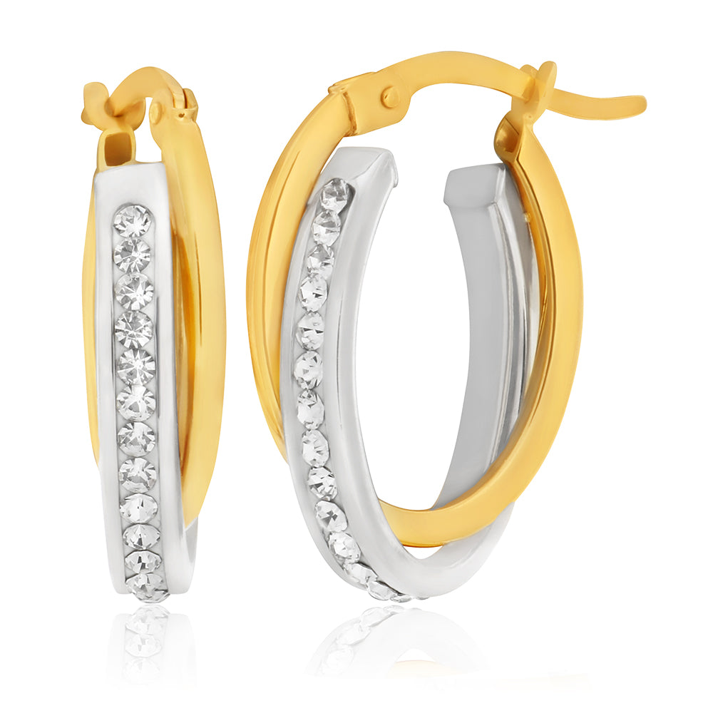 9ct Yellow Gold Silver Filled Crystal Oval Hoop Earrings