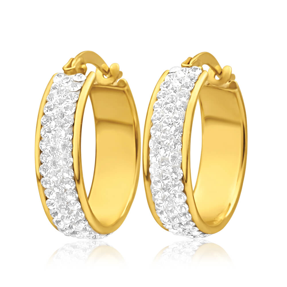 9ct Yellow Gold Silver Filled Crystal Round Hoop Earrings in 15mm