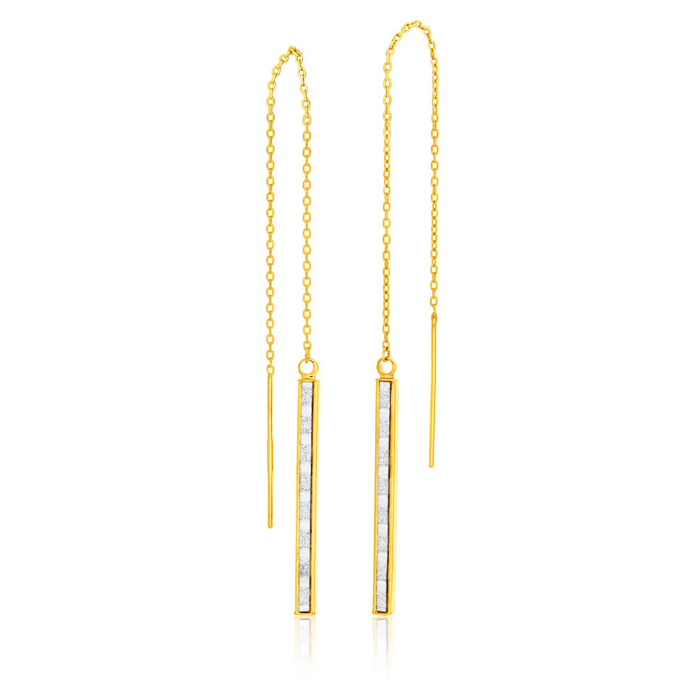 9ct Yellow Gold Silver Filled Crystal Thread Drop Earrings