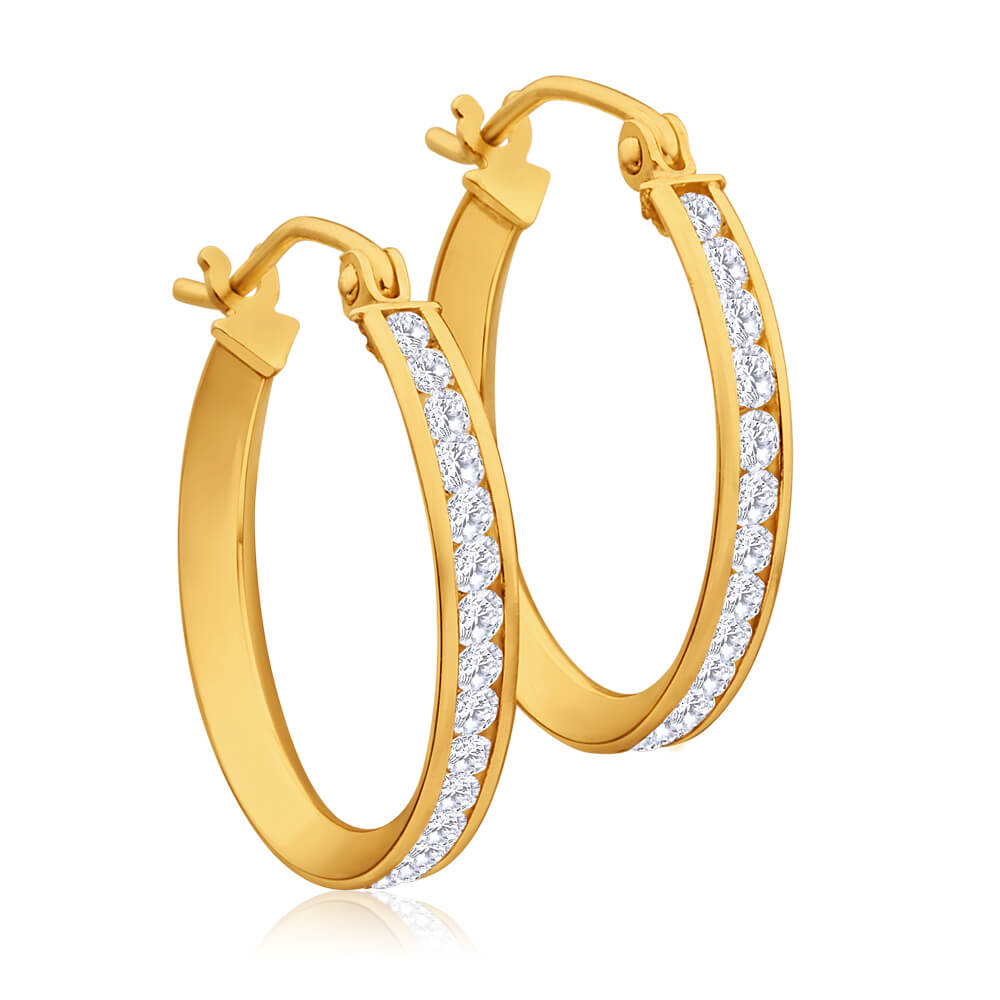 9ct Yellow Gold Silver Filled Cubic Zirconia 18mm Hoop Earrings