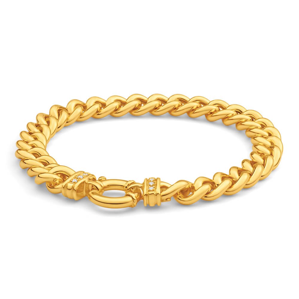 9ct Yellow Gold Silver Filled Cubic Zirconia 20cm Twist Curb Bracelet