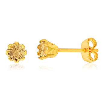 9ct Yellow Gold Silver Filled Cubic Zirconia Champ 4mm Stud Earrings