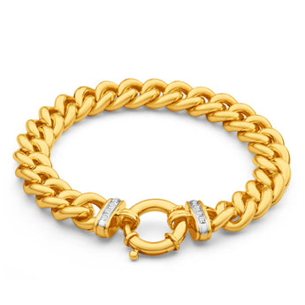 9ct Yellow Gold Silver Filled Cubic Zirconia Curb Bracelet