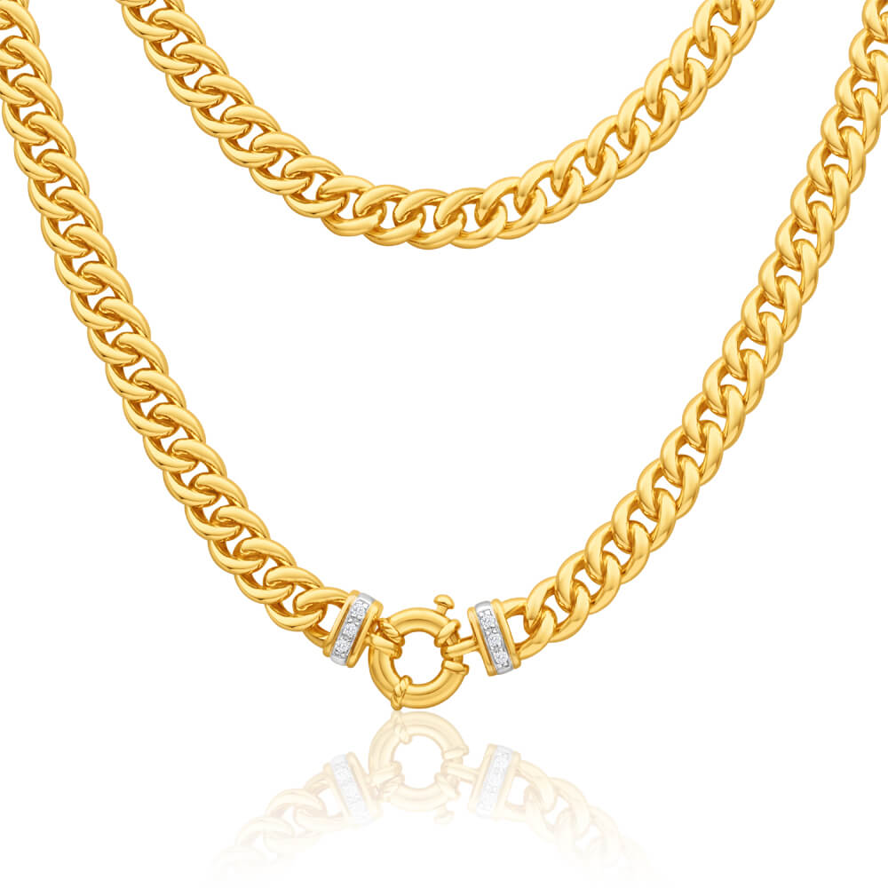 9ct Yellow Gold Silver Filled Cubic Zirconia Curb Chain