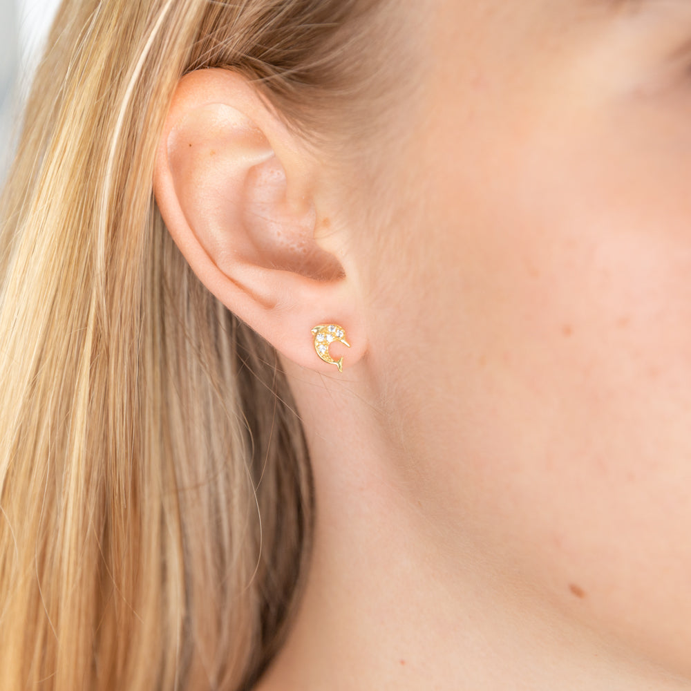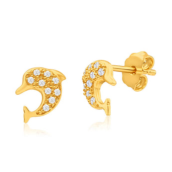 9ct Yellow Gold Silver Filled Cubic Zirconia Dolphin Stud Earrings