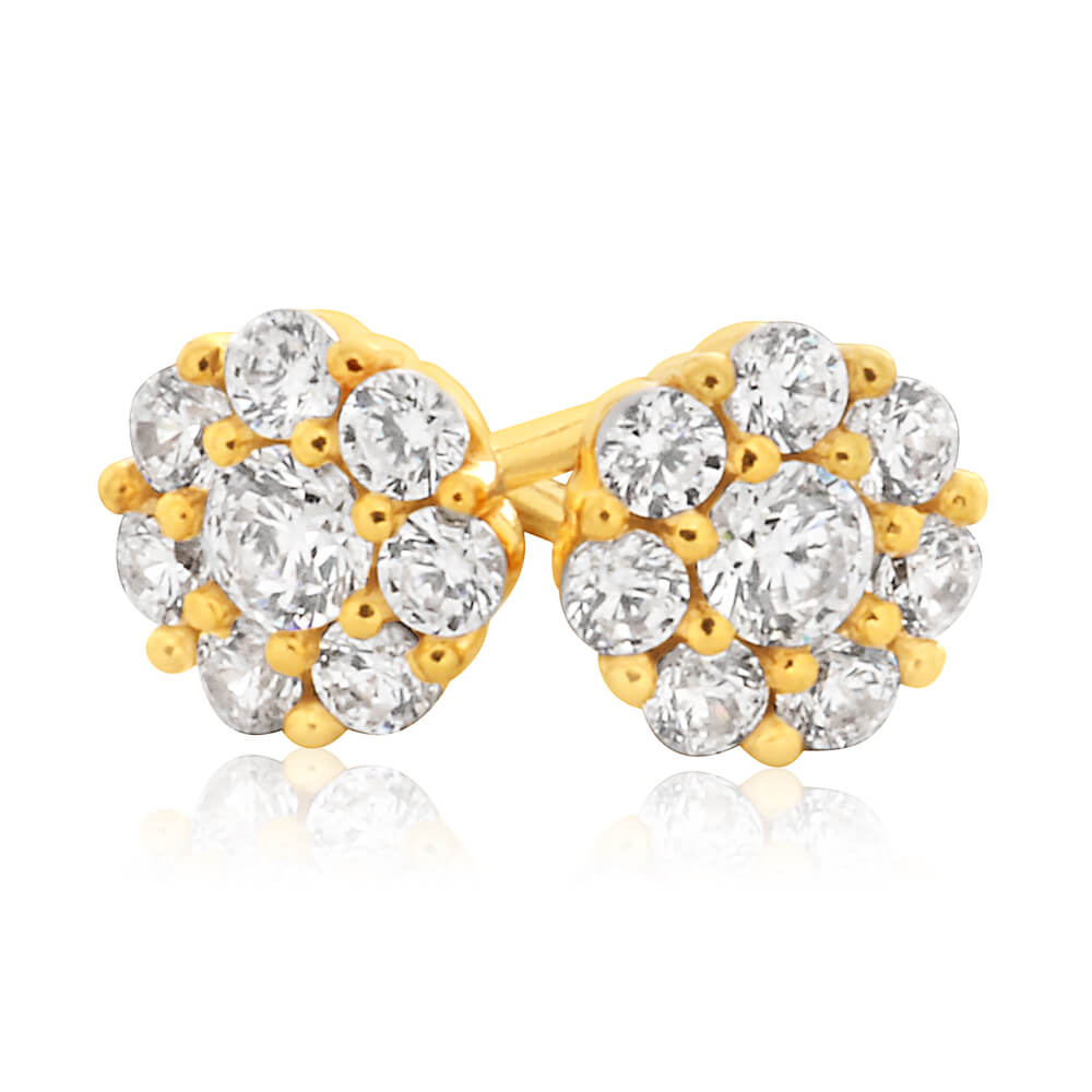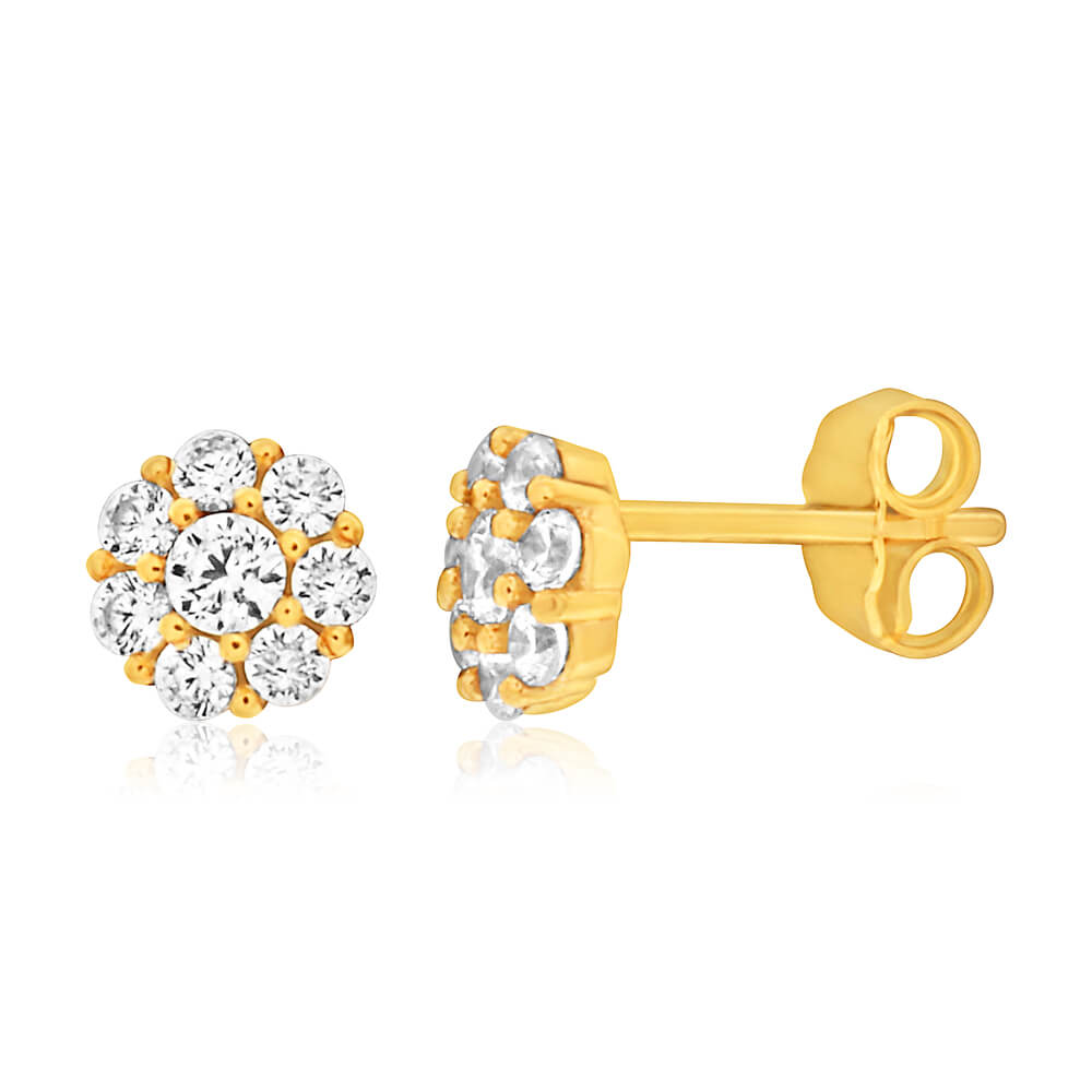 9ct Yellow Gold Silver Filled Cubic Zirconia Flower Stud Earrings