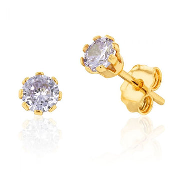 9ct Yellow Gold Silver Filled Cubic Zirconia Lavender 4mm Stud Earrings