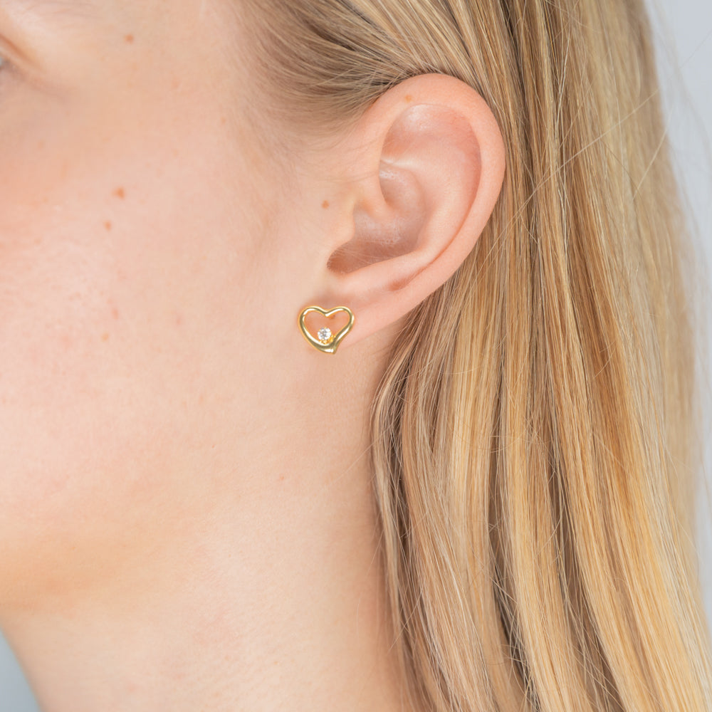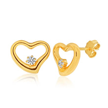 9ct Yellow Gold Silver Filled Cubic Zirconia Pretty Heart Stud Earrings