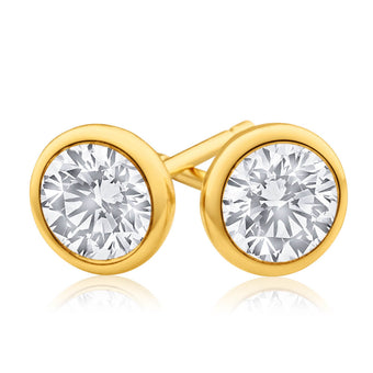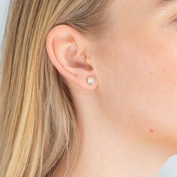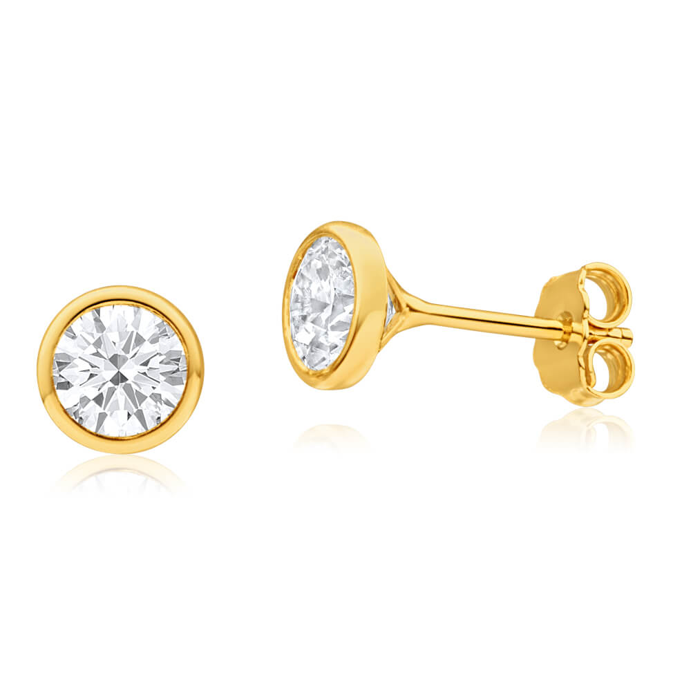9ct Yellow Gold Silver Filled Cubic Zirconia Simple Round Stud Earrings