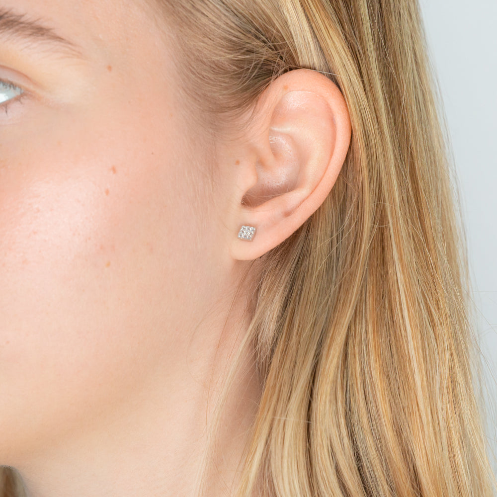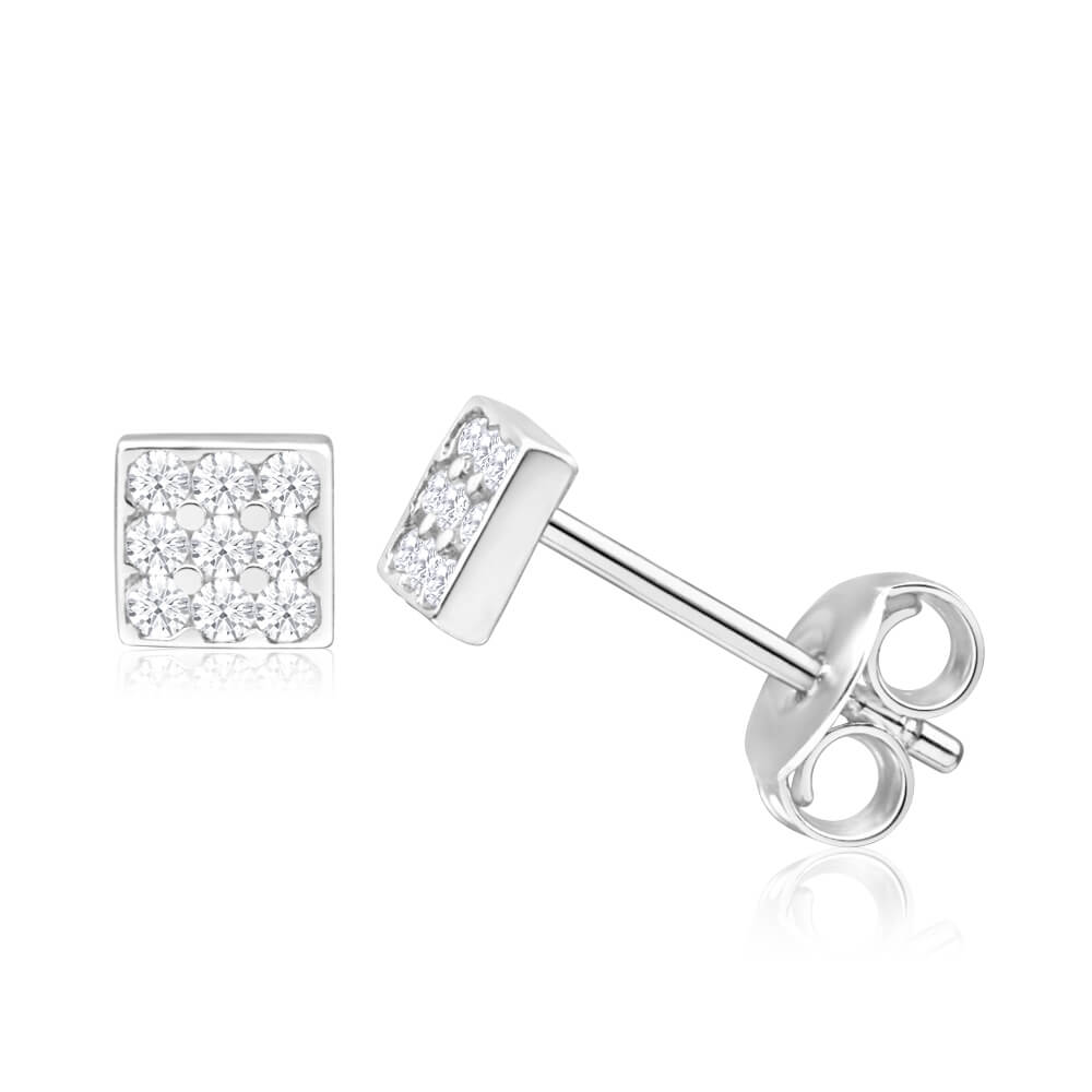 9ct Yellow Gold Silver Filled Cubic Zirconia Squared Stud Earrings