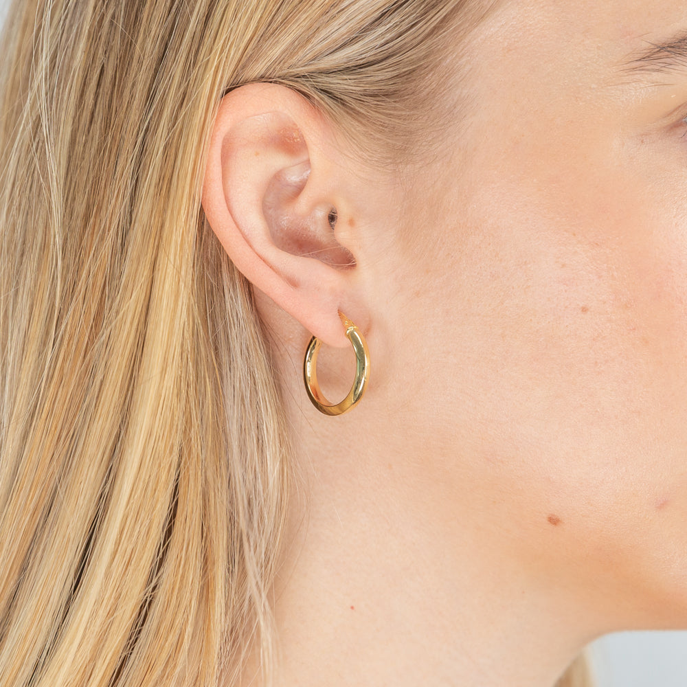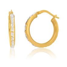 9ct Yellow Gold Silver Filled Diamond Cut 15mm Hoops Earrings