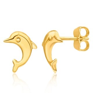 9ct Yellow Gold Silver Filled Dolphin Stud Earrings