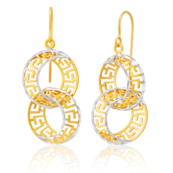 9ct Yellow Gold Silver Filled Double Hoop Greek key Earrings