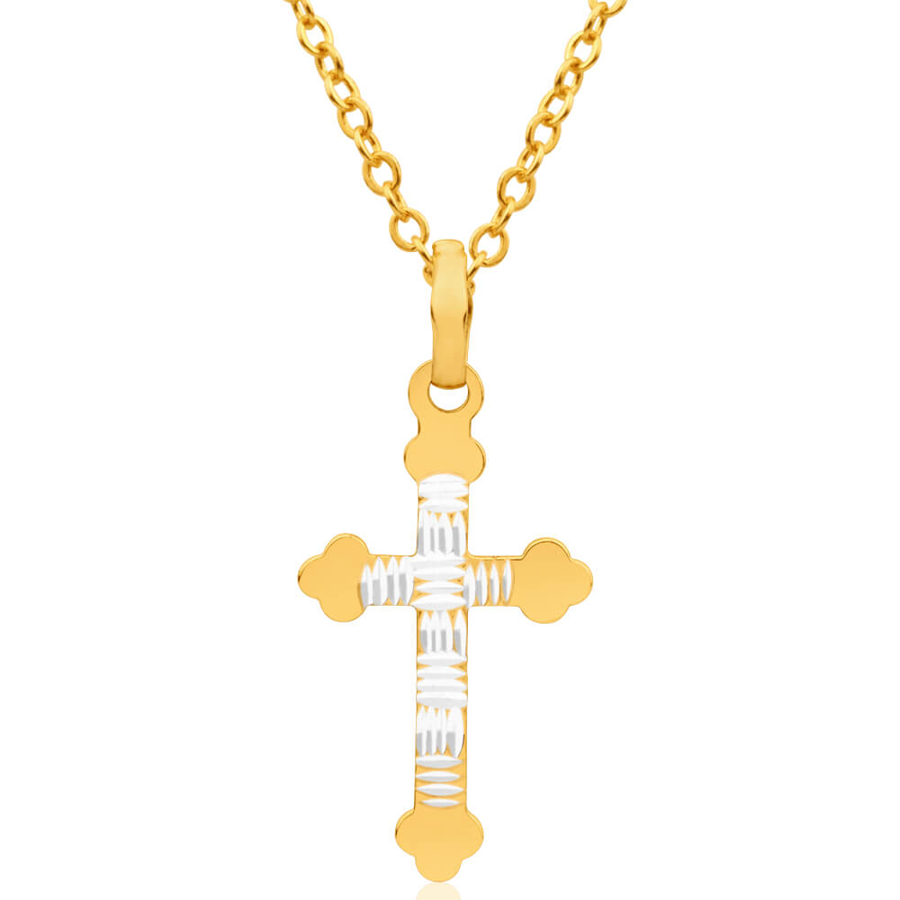9ct Yellow Gold Silver Filled Fancy Cross Pendant
