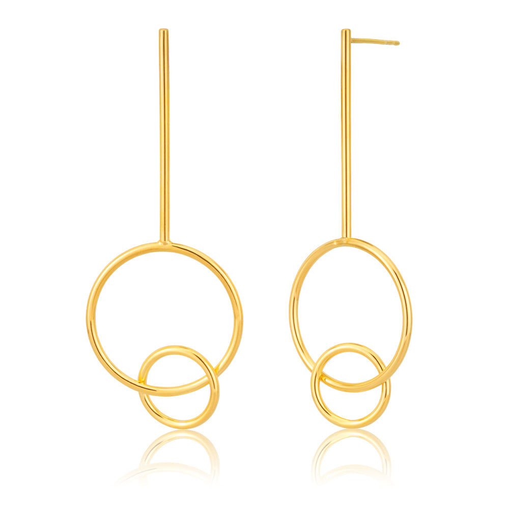 9ct Yellow Gold Silver Filled fancy Dangling Duo Earrings