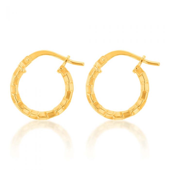 9ct Yellow Gold Silver Filled Fancy Hoop Earrings