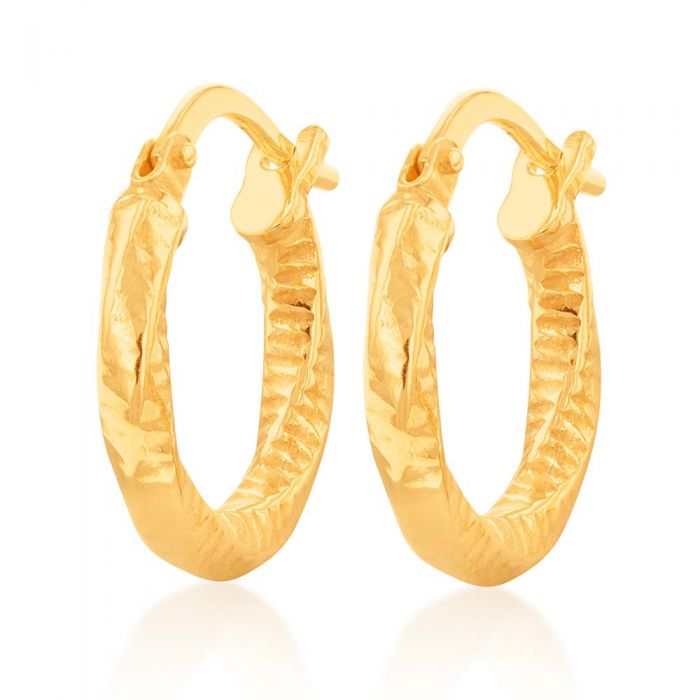9ct Yellow Gold Silver Filled Fancy Twist Hoop Earrings