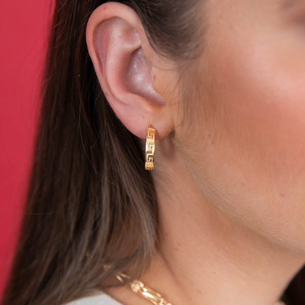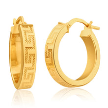 9ct Yellow Gold Silver Filled Greek Key 15mm Hoop Earrings