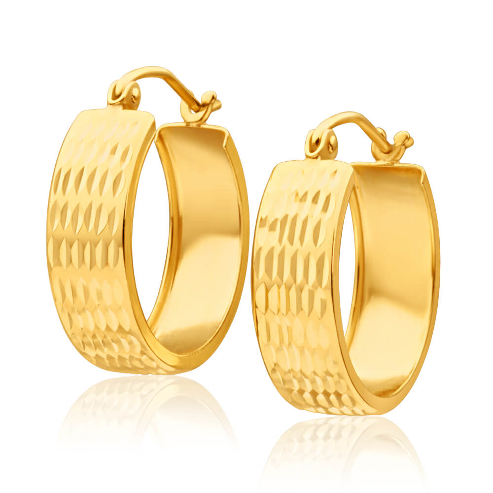 9ct Yellow Gold Silver Filled Groove Hoop Earrings