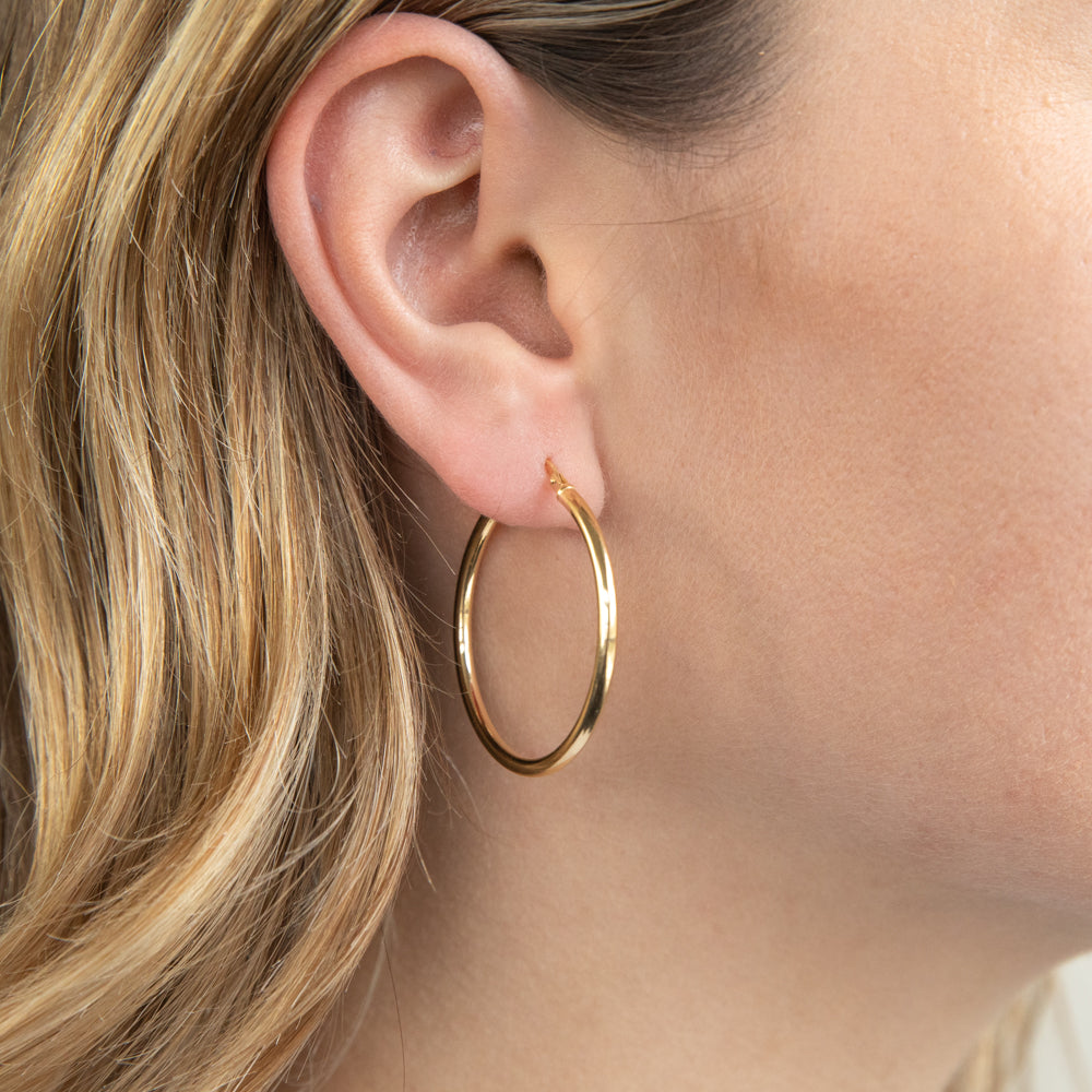 9ct Yellow Gold Silver Filled Gypsy 30mm Hoop Earrings