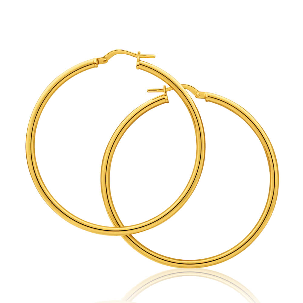 9ct Yellow Gold Silver Filled Gypsy 40mm Hoop Earrings