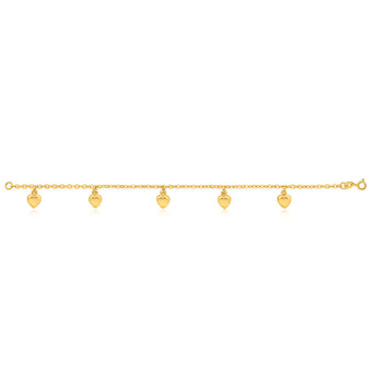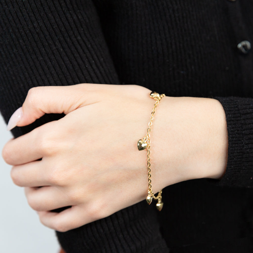 9ct Yellow Gold Silver Filled Heart Charm 19cm Bracelet