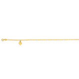 9ct Yellow Gold Silver Filled Heart Drop 27cm Curb Anklet