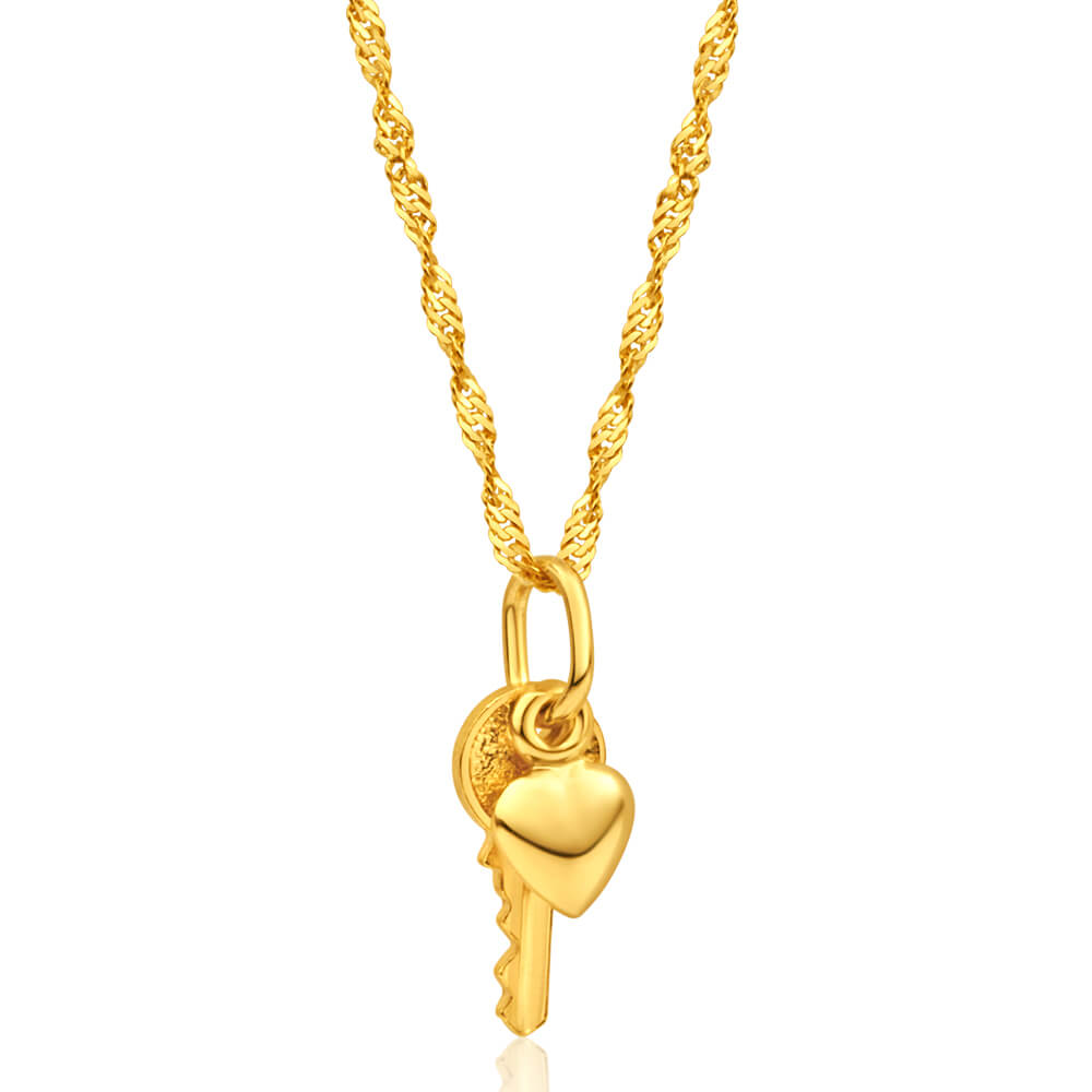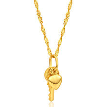 9ct Yellow Gold Silver Filled Heart & Key Pendant With 45cm Chain