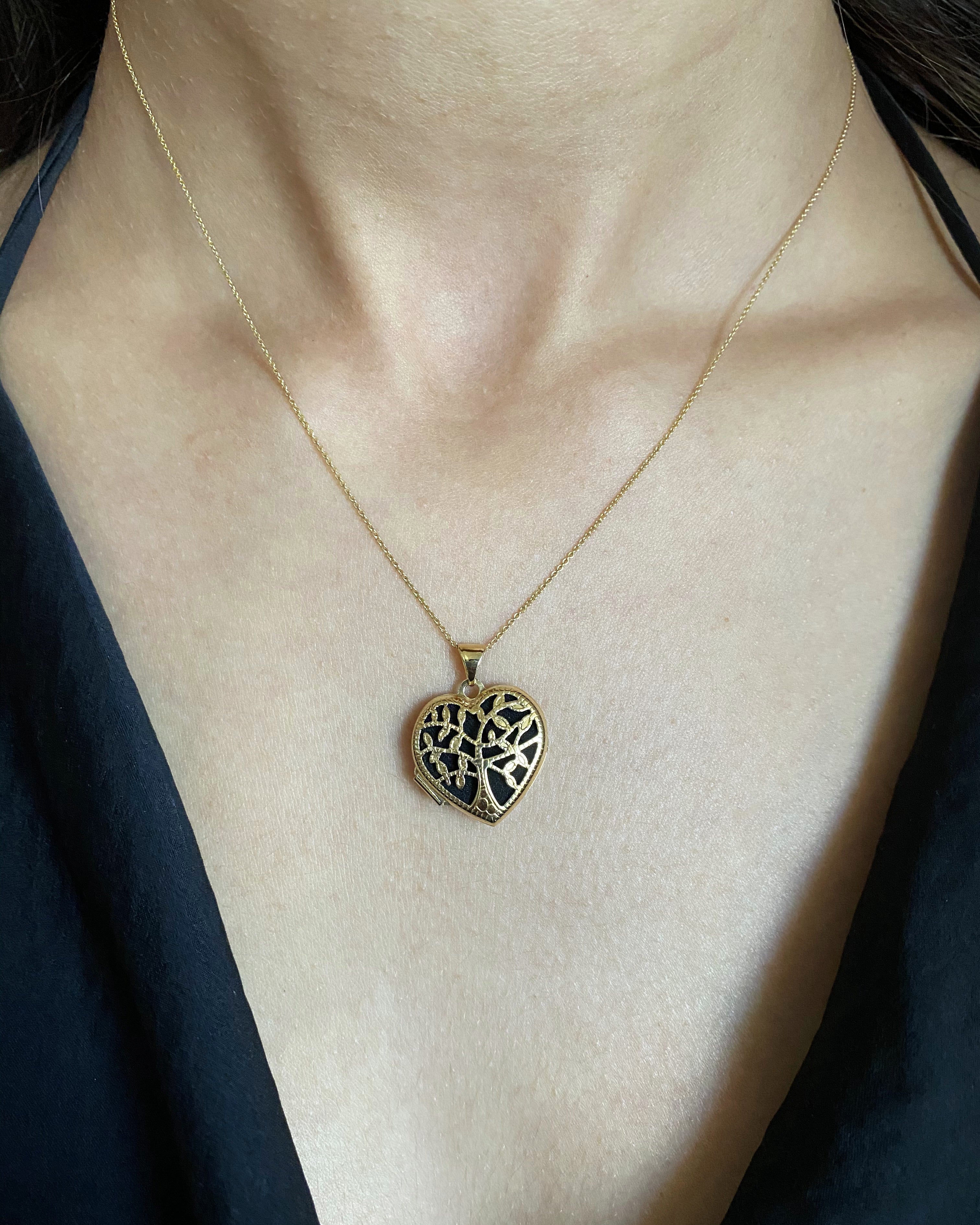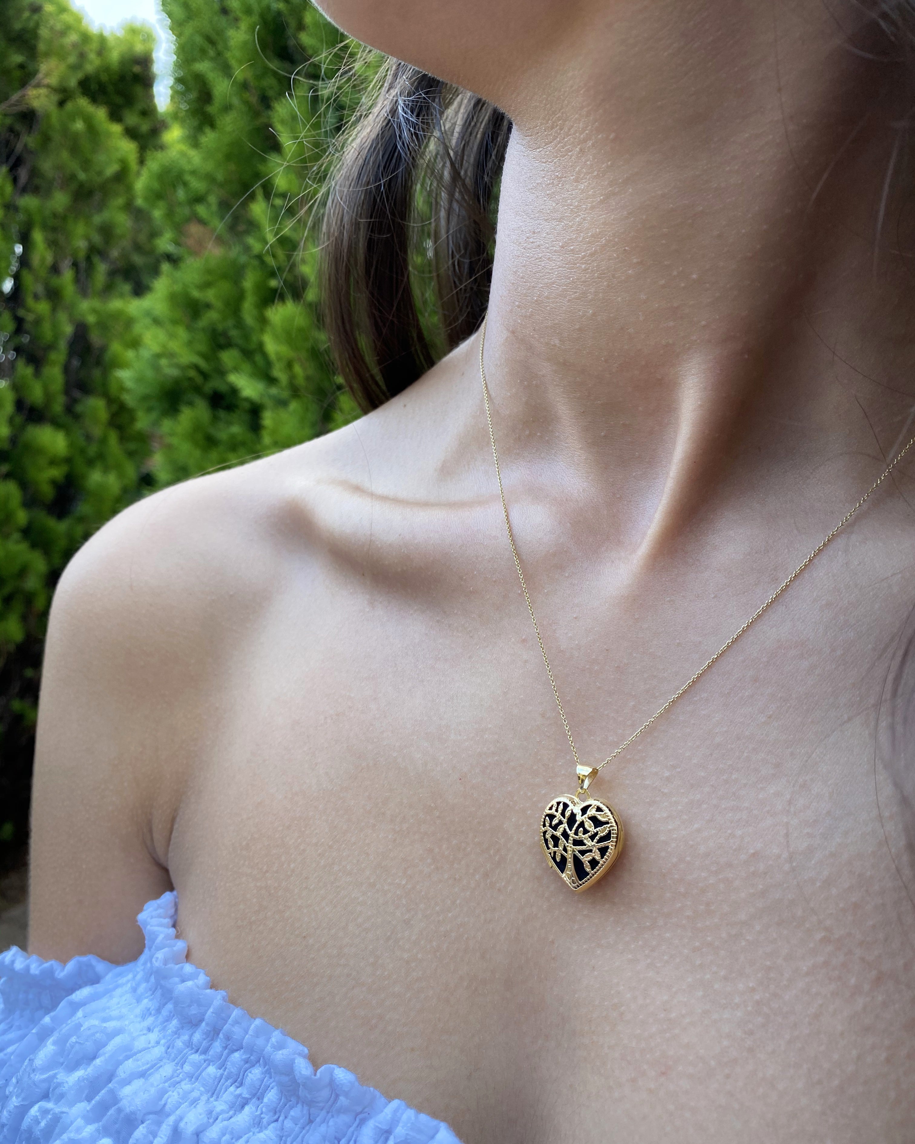 9ct Yellow Gold Silver Filled Heart Shaped filigree Tree of Life 18mm Locket Pendant