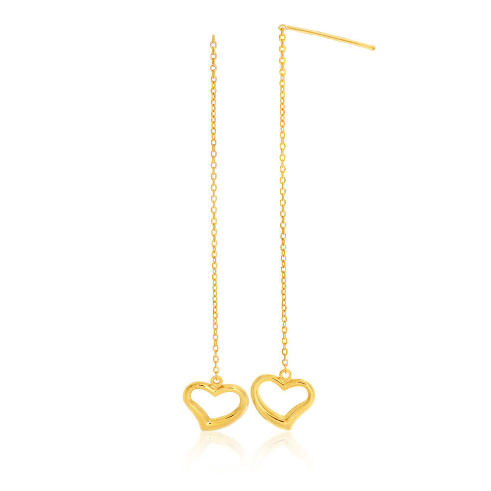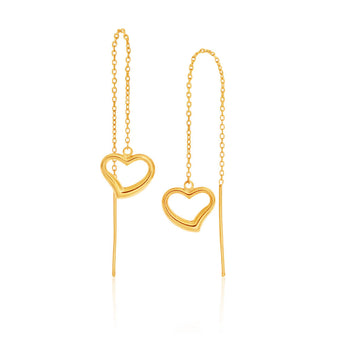 9ct Yellow Gold Silver Filled Heart Thread Drop Earrings