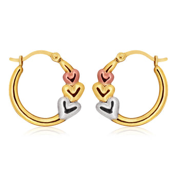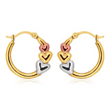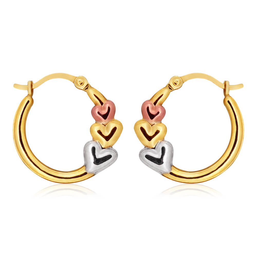 9ct Yellow Gold-Silver Filled Hoops Triple Love Hearts Multitones