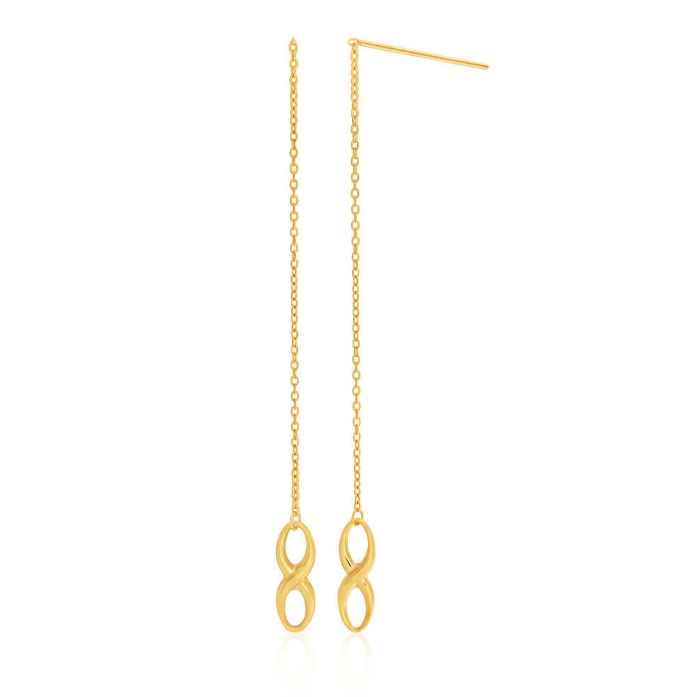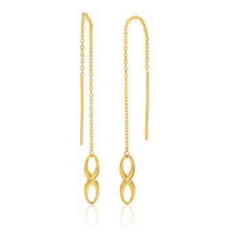 9ct Yellow Gold Silver Filled Infinity Thread Drop Earrings