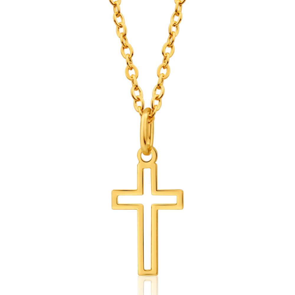 9ct Yellow Gold Silver Filled Open Cross 19mm Pendant