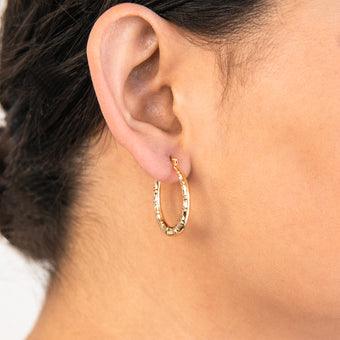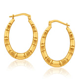 9ct Yellow Gold Silver Filled Oval Bamboo Style 13mm Hoop Earrings