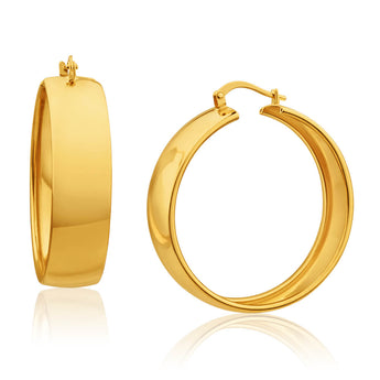 9ct Yellow Gold Silver Filled Plain 9mm Wide 30mm Hoop Earrings