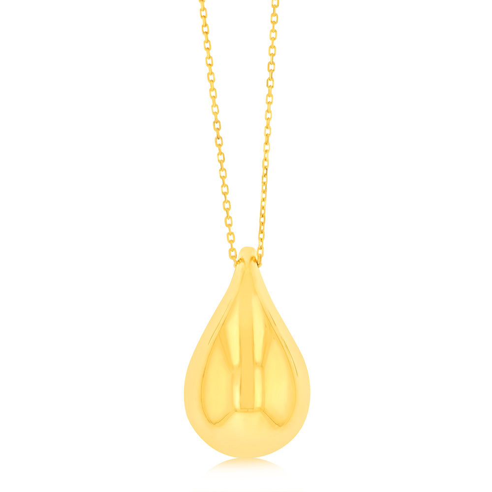 9ct Yellow Gold Silver filled Polished Tear Drop Pendant On Chain