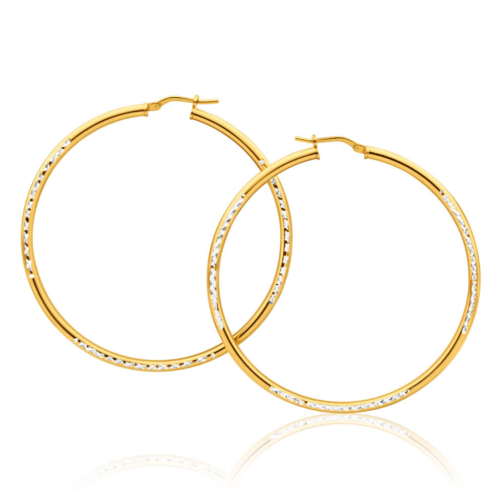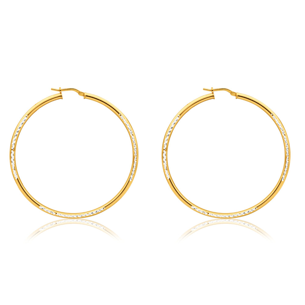 9ct Yellow Gold Silver Filled Simple Two Tone 50mm Hoop Earrings